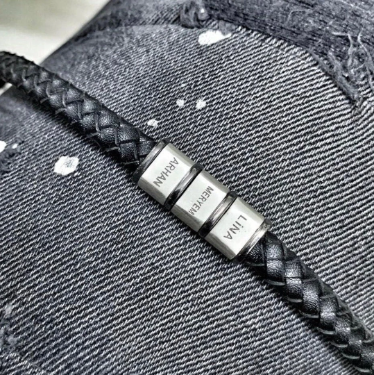 Bracelet en cuir personnalisé pour homme avec perles personnalisées