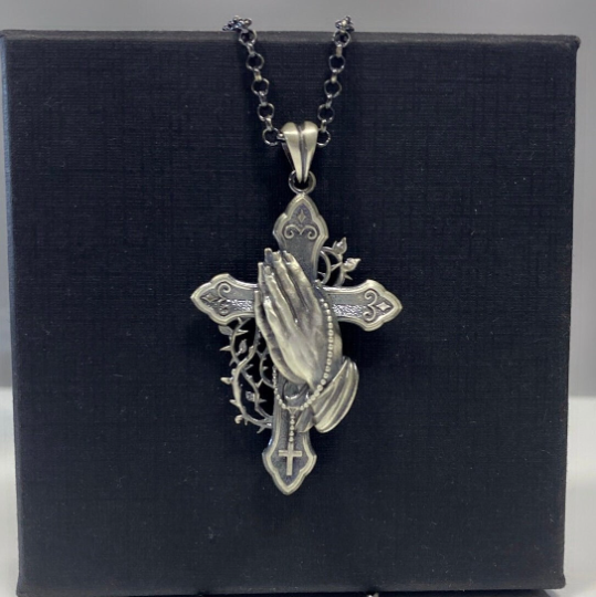 Collier crucifix avec les mains en prière